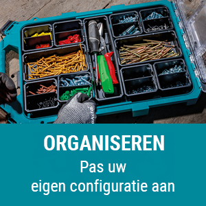 Makita MAKTRAK™ is de volgende generatie in modulaire opbergsystemen om gereedschap, accessoires en uitrusting op de werkplaats te vervoeren, op te bergen en te organiseren. Dankzij het unieke Trak Mount-dekselsysteem van MAKTRAK, dat met één hand kan worden ontgrendeld, kunt u gemakkelijk stapelen vanuit beide richtingen. De stevige vergrendelingen, in combinatie met de integratie van deksel en koffer, zorgen voor een uitstekende afdichting tegen invloeden van buitenaf.