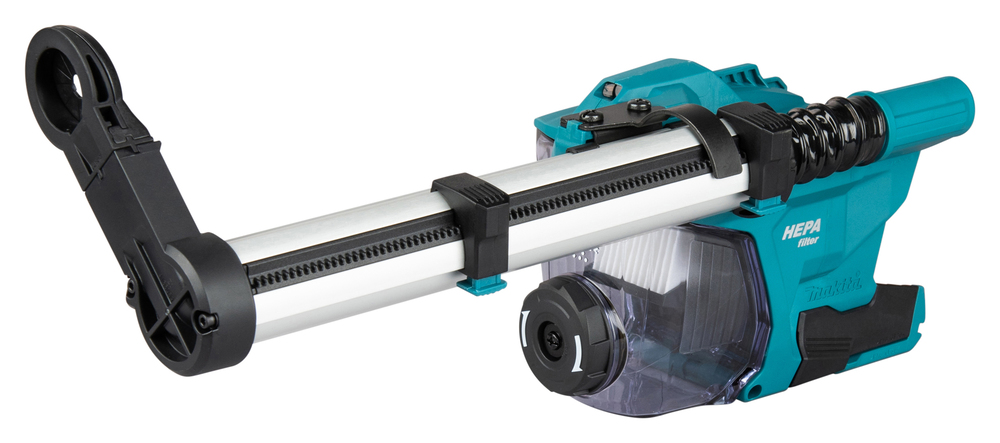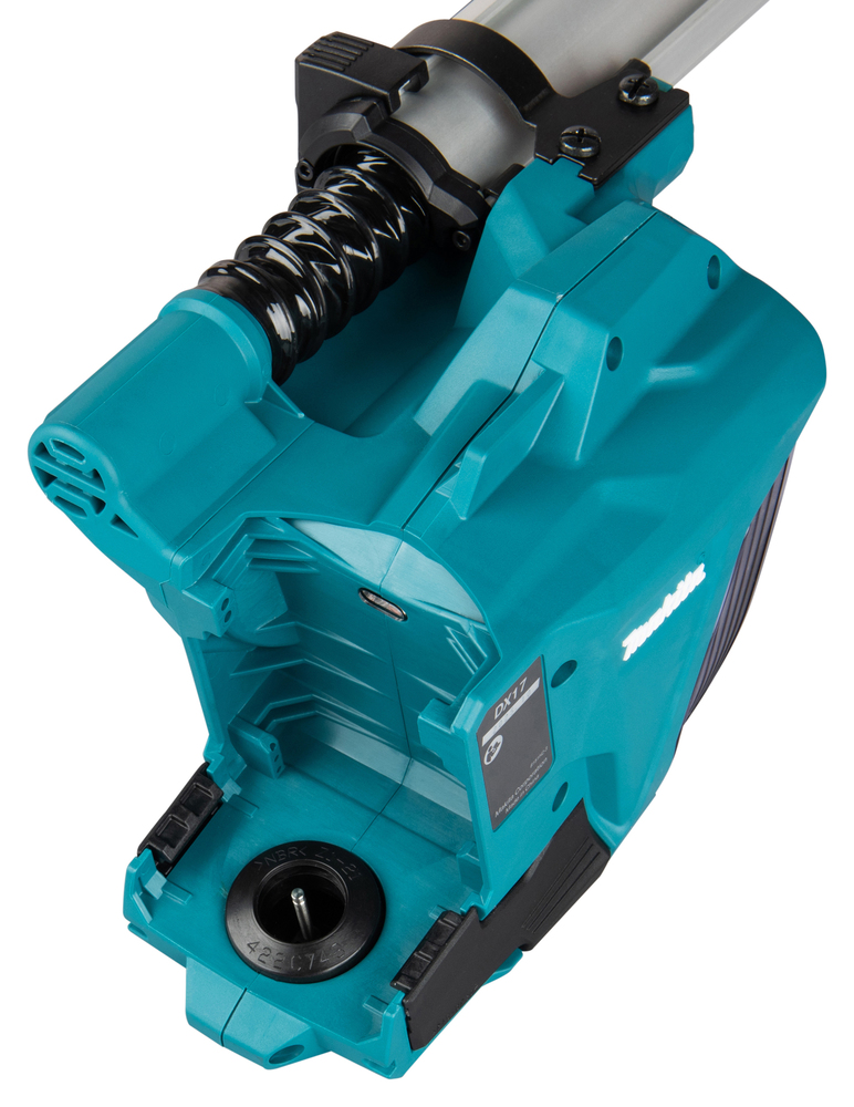Le système d'aspiration DX17 pour marteaux combinés s'intègre directement au flux d'air généré par le moteur de l'outil afin de capter les débris au niveau de la pointe de forage. Sa conception compacte assure un équilibre constant et un contrôle précis lors du forage dans le béton. Le flux d'air est acheminé à travers une chambre interne où un filtre HEPA retient les particules fines, garantissant ainsi une efficacité d'aspiration stable en utilisation continue. Le système est spécialement conçu pour le forage dans le béton et convient aux forets d'une longueur totale allant jusqu'à 265 mm, avec une portée d'aspiration effective de 200 mm. L'entrée d'aspiration de poussière s'adapte à la longueur du foret grâce à un mécanisme à bouton unique, ce qui permet de maintenir la position correcte par rapport au foret et garantit une aspiration constante quelle que soit la profondeur de perçage. La profondeur de perçage est réglée à l'aide d'un bouton-poussoir spécial qui verrouille l'aspiration dans la position souhaitée. L'entretien du filtre est facilité par un mécanisme de nettoyage activé par un bouton rotatif. En tournant le bouton, la poussière accumulée sur la surface du filtre est détachée, ce qui rétablit le flux d'air sans qu'il soit nécessaire de démonter le système. Les matériaux collectés sont stockés dans un bac à poussière transparent qui offre une vue claire du niveau de remplissage, permettant ainsi de le vider en temps voulu. L'ensemble du système est conçu pour fonctionner comme un accessoire intégré qui garantit une bonne maîtrise des poussières tout en étant léger et facile à utiliser lors des opérations de perçage du béton.Informations technique