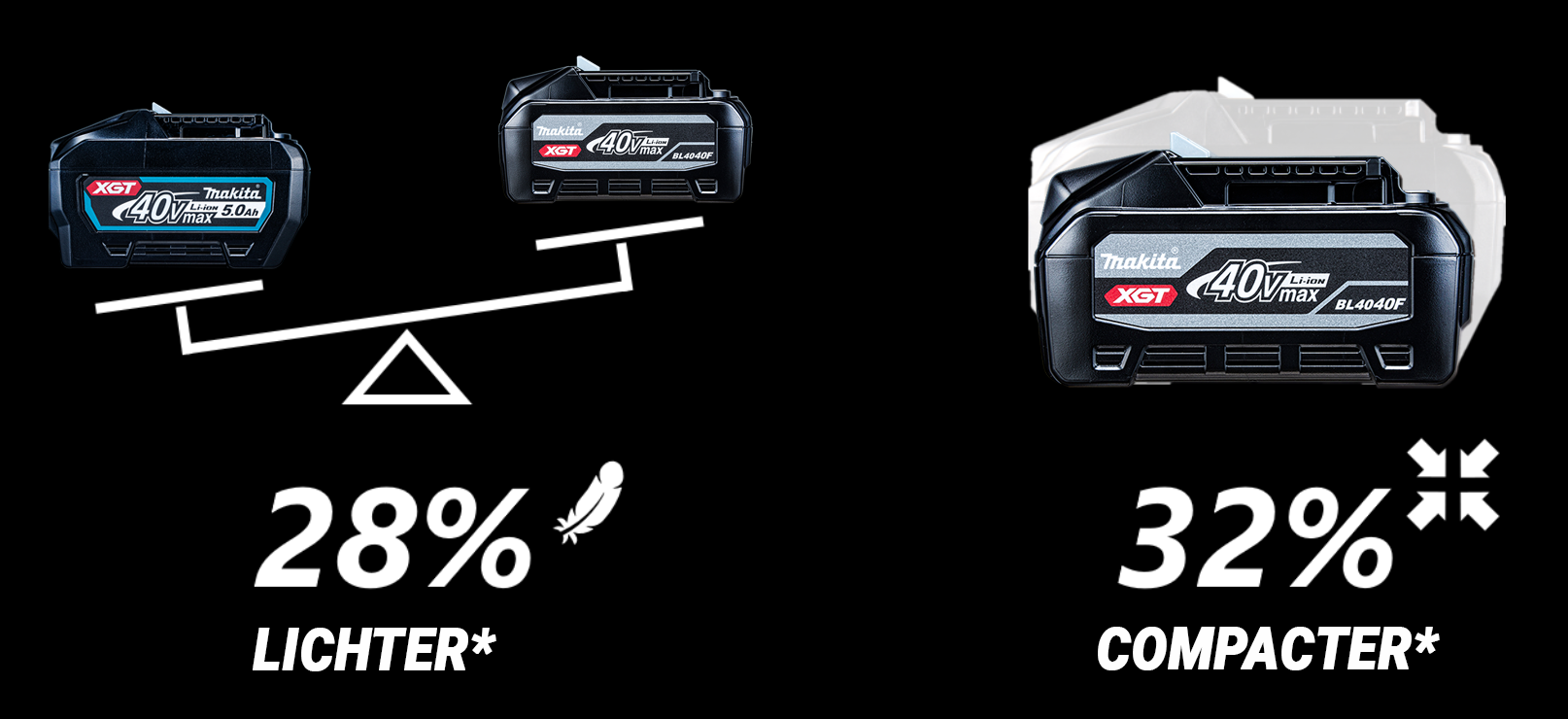 BL4040F is kleiner en lichter in vergelijking met BL4050F terwijl het piekvermogen gelijk is.