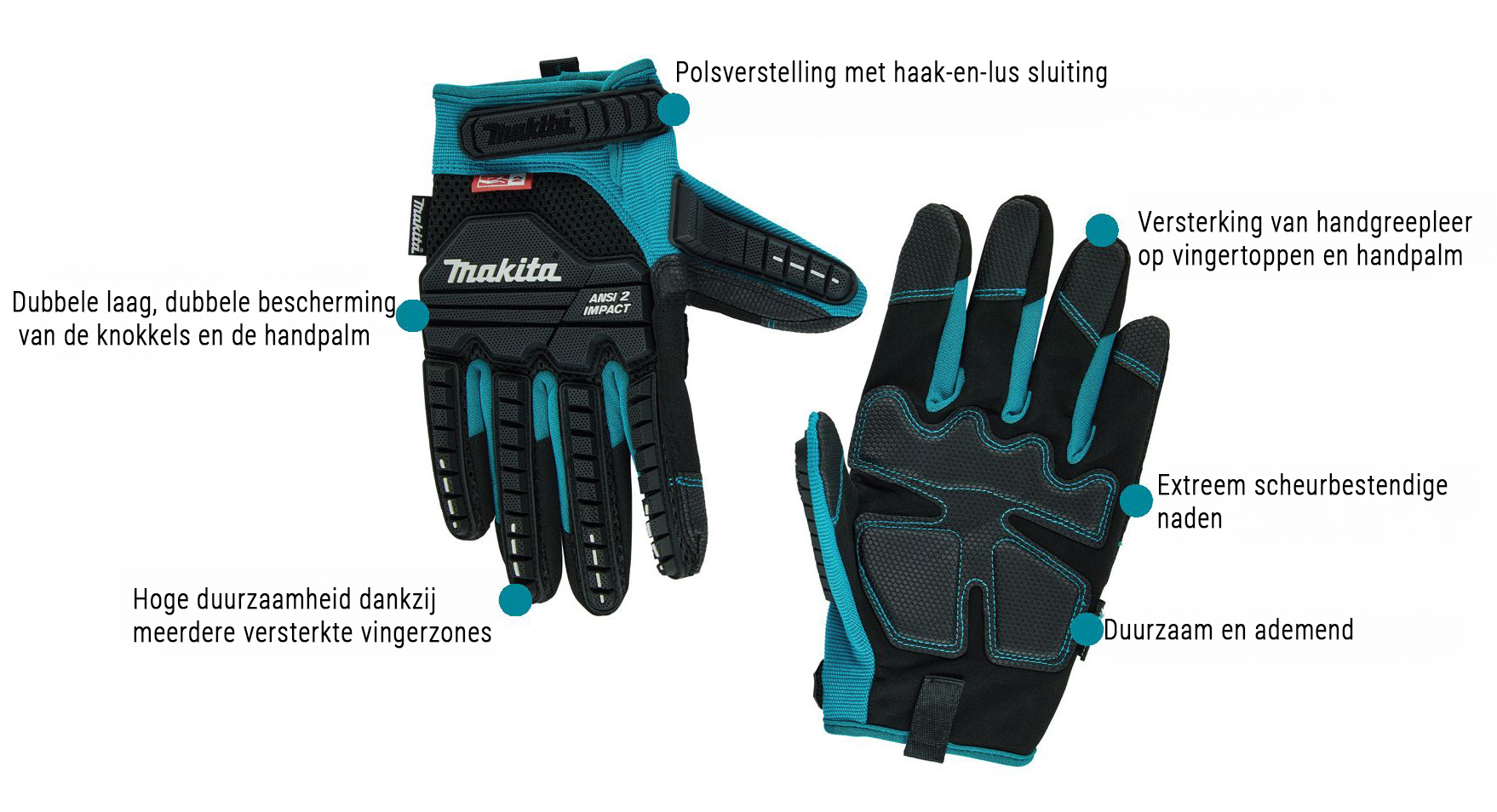 Werkhandschoenen zijn essentieel voor bescherming en veiligheid bij tal van toepassingen. Ze bieden betrouwbare bescherming tegen verwondingen, vooral bij het regelmatig hanteren van machines en materialen. De juiste pasvorm is cruciaal voor een goed comfort en sterke prestaties. Makita werkhandschoenen zijn functioneel en ergonomisch ontworpen om de productiviteit te verhogen en de veiligheid op de werkplek te garanderen.